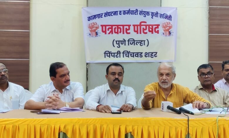 बुधवारी पिंपरी येथे आयोजित केलेल्या पत्रकार परिषदेत ज्येष्ठ कामगार नेते इंदू प्रकाश मेनन, चंद्रकांत तिवारी, वसंत पवार, अनिल रोहम, गणेश दराडे आदी उपस्थित होते.