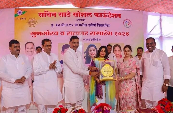 सचिन साठे सोशल फाउंडेशन च्या वतीने गुणवंत विद्यार्थी व मान्यवरांचा गौरव