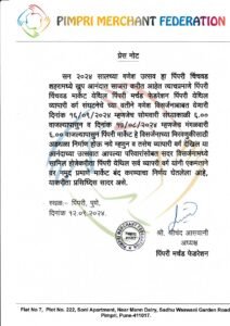 गणपती विसर्जन मिरवणूक निमित्त सोमवारी, मंगळवारी संध्याकाळी मोठी भाविकांची गर्दी होइल. वाहतुकीस अडथळा होऊ नये व सुरक्षिततेच्या दृष्टीने आणि व्यापाऱ्यांना देखील या मिरवणुकीत सहभागी होण्यासाठी सोमवारी आणि मंगळवारी (दि. १६ व १७) सायंकाळी सहा नंतर व्यापारी उस्फूर्तपणे दुकाने बंद ठेवणार आहेत अशी माहिती पिंपरी मर्चंट फेडरेशनचे अध्यक्ष श्रीचंद आसवानी यांनी प्रसिद्धीस दिली आहे.