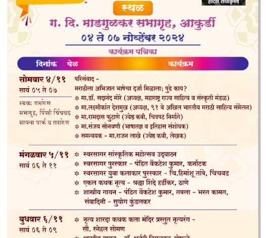 तत्पूर्वी सोमवारी (दि.४ नोव्हेंबर) पिंपरी चिंचवड सायन्स पार्कच्या तारांगण सभागृहात सायंकाळी ५ वाजता, ‘मराठी भाषेला अभिजात भाषा दर्जा- पुढे काय ?’ या चर्चासत्राचे आयोजन करण्यात आले आहे.