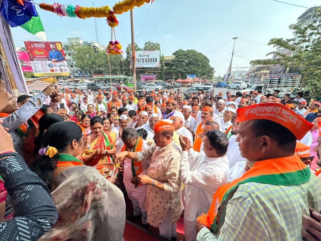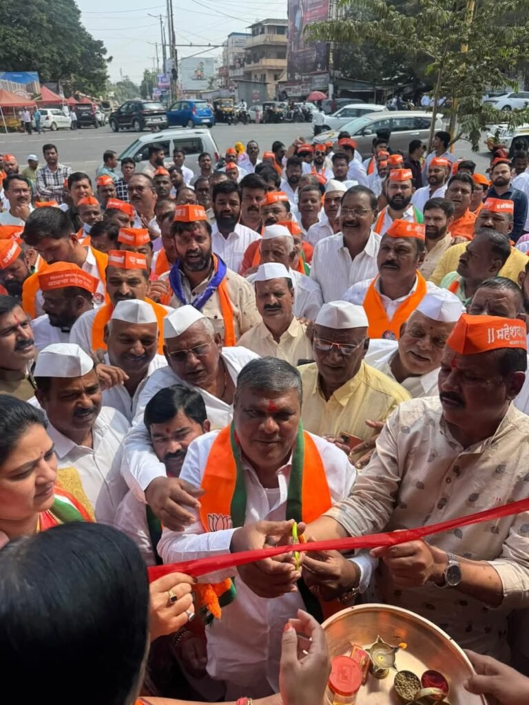 पिंपरी, पुणे (दि. ३ नोव्हेंबर २०२४) भोसरी विधानसभा मतदारसंघातील भाजप-शिवसेना-राष्ट्रवादी-आरपीआय (आठवले गट) व मित्र पक्ष महायुतीचे अधिकृत उमेदवार आमदार महेश लांडगे यांची निवडणूक कचेरी मोशीत सुरू करण्यात आली आहे. मोशीतील छत्रपती शिवाजी महाराज चौक येथील सावित्रीबाई फुले प्राथमिक शाळेजवळील या कचेरीचे ज्येष्ठ नागरिकांच्या हस्ते उद्घाटन करण्यात आले. मोशीचे ग्रामदैवत नागेश्वर महाराजांच्या जयघोषात कचेरीचे कामकाज सुरू झाले.