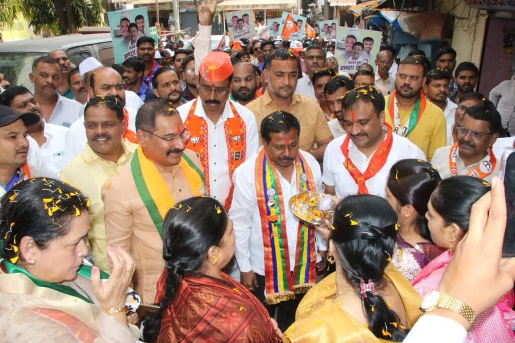 ठिकठिकाणी महिलांनी औक्षण केले व युवक युवतीने पुष्पवृष्टी करून आमदार अण्ण बनसोडे यांना शुभेच्छा दिल्या.