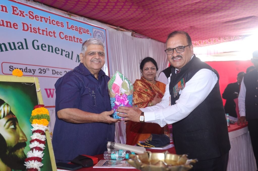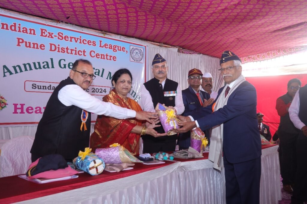 भारतीय माजी सैनिक संघ, पुणे जिल्हा केंद्राची ४१ वी वार्षिक सर्वसाधारण सभा, आकुर्डी खंडोबा मंदिर, सांस्कृतिक भवन येथे रविवारी (दि.२९) झाली. यावेळी बँक ऑफ बडोदाचे अधिकारी प्रवीण याज्ञिक, माजी उपमहापौर शैलजा मोरे, राजू मिसाळ, सामाजिक कार्यकर्ते चंद्रकांत उर्फ बाळा शिंदे, ब्रिगेडियर डॉ. संजीव देवस्थळी (नि) बँक ऑफ बडोदा डिफेन्स बँकिंग ॲडवायसर , आयइएसएल, पीडीसी अध्यक्ष सुभेदार मेजर (नि) वाय. एस. महाडिक, उपाध्यक्ष डी. आर. पडवळ, सचिव डी. एच. कुलकर्णी, सहसचिव बी. एच. अबनावे, खजिनदार एम. एन. भराटे, सहसचिव व्ही. व्ही. निकम सदस्य डी. डी. लोहोकरे एस. डी. राजाराम, यु. डी. सुर्वे, कर्नल आर. ई. कुलकर्णी (नि), ले. कर्नल व्ही. व्ही. वेसविकर, श्याम परसोळकर वर्धा, कर्नल साहेबराव शेळके, कैलास जाधव, कमांडर (नि) रामसींग आदी उपस्थित होते.