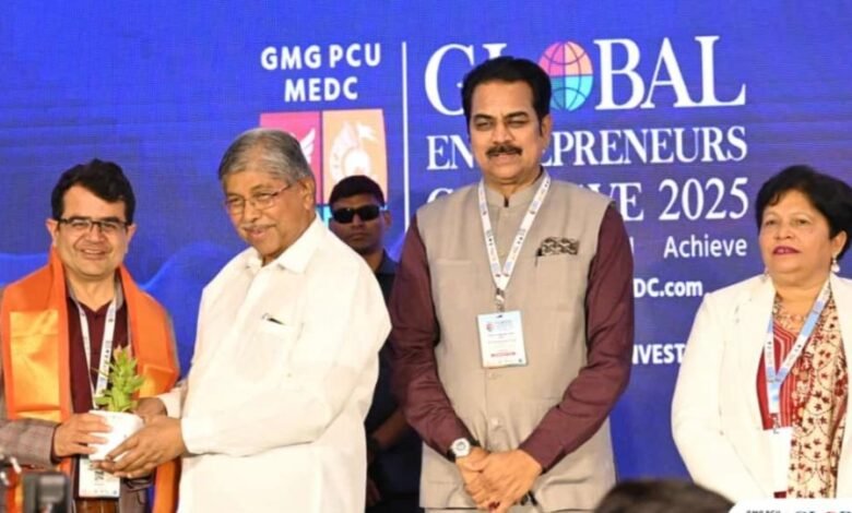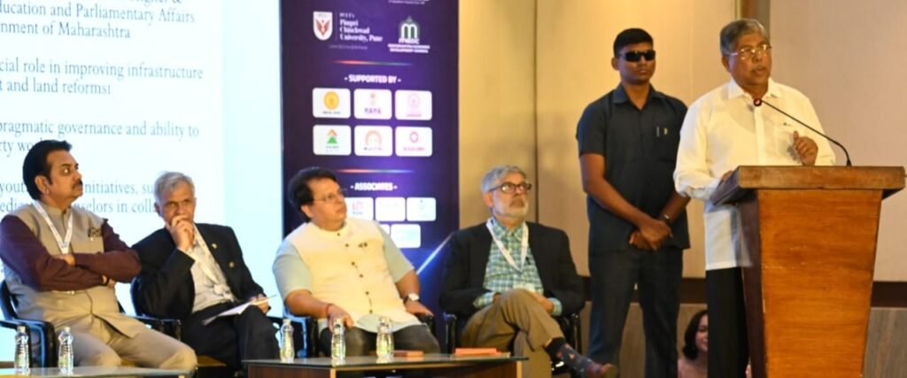 पिंपरी चिंचवड एज्युकेशन ट्रस्ट (पीसीईटी) संचलित पिंपरी चिंचवड विद्यापीठ (पीसीयु), गर्जे मराठी ग्लोबल, महाराष्ट्र इकॉनॉमिक डेव्हलपमेंट कौन्सिल यांच्या संयुक्त विद्यमाने, बालेवाडी येथे ‘ग्लोबल एंटरप्रेन्युअर्स कॉन्क्लेव्ह २०२५’ मध्ये उद्घाटनाच्या द्वितीय सत्रामध्ये चंद्रकांत पाटील मार्गदर्शन करताना बोलत होते.