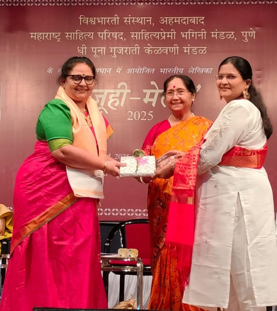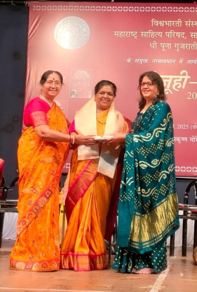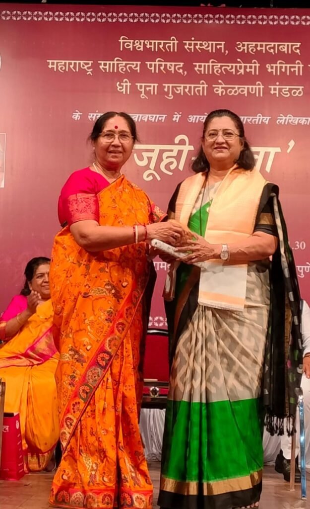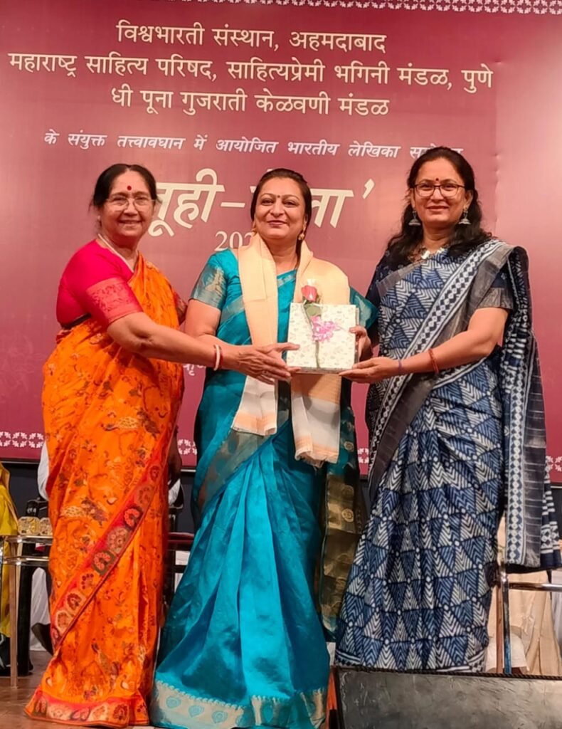यावेळी आमदार उमा खापरे, विश्वभारती संस्था अहमदाबाद प्रमुख उषा उपाध्याय, उद्योगपती सुनील मेहता, पुना गुजराती केळवण मंडळ अध्यक्ष राजेश शहा, साहित्य प्रेमी भगिनी मंडळ माजी अध्यक्ष डॉ. मंदा खांडगे, महाराष्ट्र साहित्य परिषद कार्यवाहक सुनिताराजे पवार, साहित्य प्रेमी भगिनी मंडळ अध्यक्ष अंजली कुलकर्णी व डॉ. धनंजय केळकर, मीता पीर, यामिनी व्यास, गोपाली बुच, प्रीती पुजारा, भार्गवी पंड्या, लक्ष्मी डोबरिया, वर्षा प्रजापती, कौशल उपाध्याय, मार्गी दोशी, नियती अंतानी, डॉ. फाल्गुनी शशांक आदी उपस्थित होते.