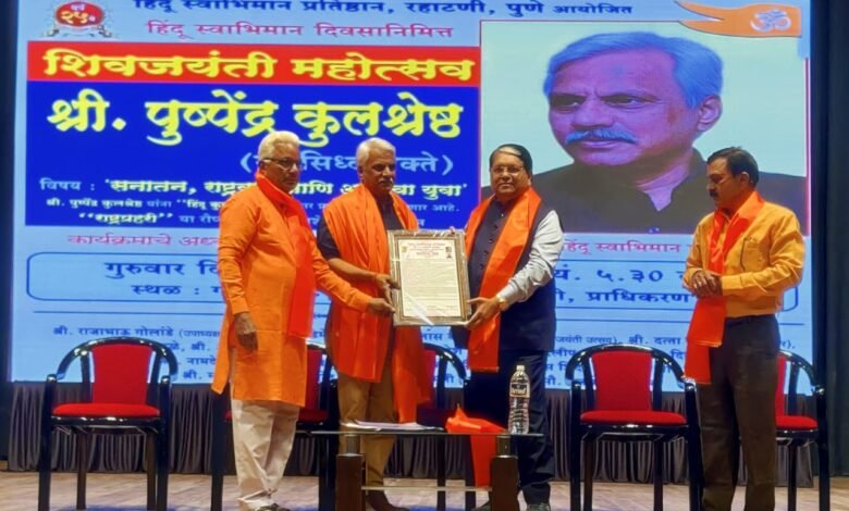 पुष्पेन्द्र कुलश्रेष्ठ यांना हिंदू स्वाभिमान प्रतिष्ठान कडून "हिंदू कुलभूषण" पुरस्कार देऊन सन्मान