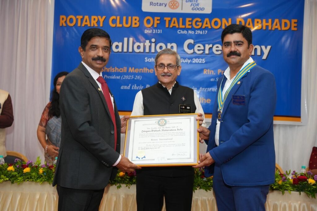 पिंपरी, पुणे (दि. १२ जुलै २०२५) तळेगाव दाभाडे येथील उद्योजक श्रीशैल मेंथे यांची रोटरी क्लब ऑफ तळेगाव दाभाडेच्या अध्यक्षपदी निवड करण्यात आली. रोटरी क्लब ३३ वा पदग्रहण सोहळा नुकताच तळेगाव येथे संपन्न झाला.