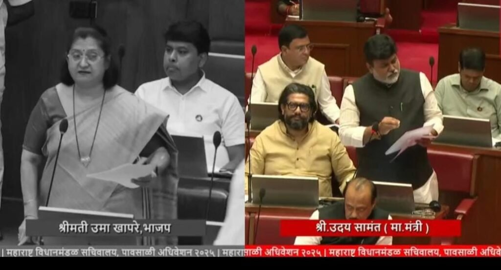 उमा खापरे यांनी विचारलेल्या प्रश्नांना मंत्री उदय सामंत, पंकजा मुंडे, दादा भुसे, माधुरीताई मिसाळ, नरहरी झिरवळ, इंद्रनील नाईक, शिवेंद्रसिंहराजे भोसले, प्रकाश आबिटकर तसेच डॉ. पंकज भोयर या मंत्र्यांनी उत्तरे दिली.