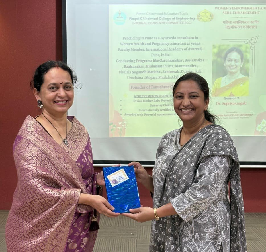 पिंपरी चिंचवड एज्युकेशन ट्रस्टच्या (पीसीईटी) आकुर्डी येथील पिंपरी चिंचवड कॉलेज ऑफ इंजीनियरिंग (पीसीसीओई) मध्ये सावित्रीबाई फुले पुणे विद्यापीठ यांच्या सहयोगाने गुणवत्ता सुधार योजनेअंतर्गत आयोजित केलेल्या महिला सक्षमीकरण कार्यशाळेत मार्गदर्शन करताना डॉ. गुगळे बोलत होत्या. यावेळी मानसिक आरोग्य प्रशिक्षक डॉ. मानसी सोंगगिरकर – बोराडे तसेच डॉ. जी. एन. कुलकर्णी, अधिष्ठाता डॉ. एस. यु. भंडारी, आयसीसीचे उपाध्यक्ष डॉ. व्हि. वाय. भालेराव आदी उपस्थित होते.