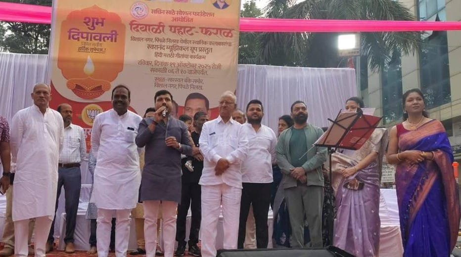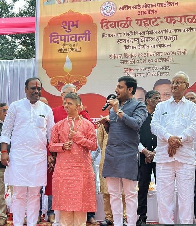 दिवाळी निमित्त पिंपळे निलख येथे सचिन साठे सोशल फाउंडेशन तर्फे दोन दिवसीय “शुभ दिवाळी पहाट – फराळ” हा कार्यक्रम मोठ्या उत्साहात संपन्न झाला. शनिवारी (१८ ऑक्टोबर) देवांग कोष्टी कार्यालय, शारदा कॉलनी येथे आणि रविवारी (१९ ऑक्टोबर) विशाल नगर, पिंपळे निलख येथे आयोजित करण्यात आला होता. यामध्ये संगीत, मैत्री आणि सणाचा उत्साह यांचा सुंदर संगम अनुभवायला मिळाला.