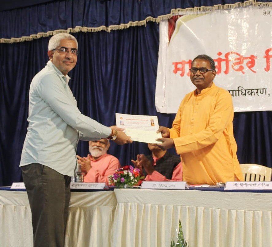 निगडी प्राधिकरण येथील ज्ञानप्रबोधिनी मधील मनोहर सभागृह मातृमंदिर विश्वस्त संस्था आयोजित संत साहित्य पुरस्कार वितरण सोहळ्यात ते बोलत होते. व्यासपीठावर अध्यक्ष नितीन भाई कारिआ, कार्यवाह डॉ. मनोज देवळेकर, उपाध्यक्षा शारदा चोरडिया, उपक्रम संयोजक सुधीर कुलकर्णी, सुभाष देशपांडे उपस्थित होते.