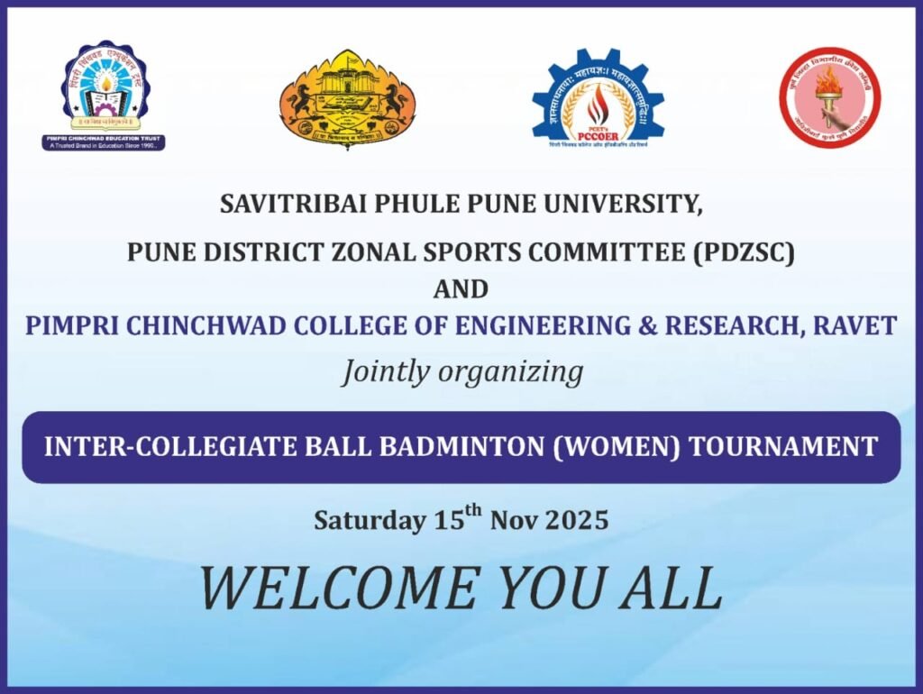 सावित्रीबाई फुले पुणे विद्यापीठ, पुणे जिल्हा विभागीय क्रीडा समिती आणि रावेत येथील पिंपरी चिंचवड कॉलेज ऑफ इंजीनियरिंग अँड रिसर्च यांच्या वतीने रावेत येथे झालेल्या आंतर महाविद्यालयीन बॉल बॅडमिंटन (मुली) स्पर्धा आयोजित करण्यात आल्या होत्या. या स्पर्धेत अंतिम सामन्यात हडपसर येथील एस. एम. जोशी महाविद्यालयाने पीसीसीओईआर च्या संघास पहिल्या फेरीत ३५ – २३ आणि दुसऱ्या फेरीत ३५ – २० असा सरळ सेट मध्ये पराभव करून प्रथम क्रमांक मिळविला. सेमी फायनल सामन्यात पीसीसीओईआर संघाने हडपसर येथील ए. एम. महाविद्यालय संघावर प्रथम फेरीत ३५ – २४, द्वितीय फेरीत १६ – ३५, तर तृतीय फेरीत ३५ – २५ गुणांनी विजय मिळवून द्वितीय क्रमांक पटकावला.