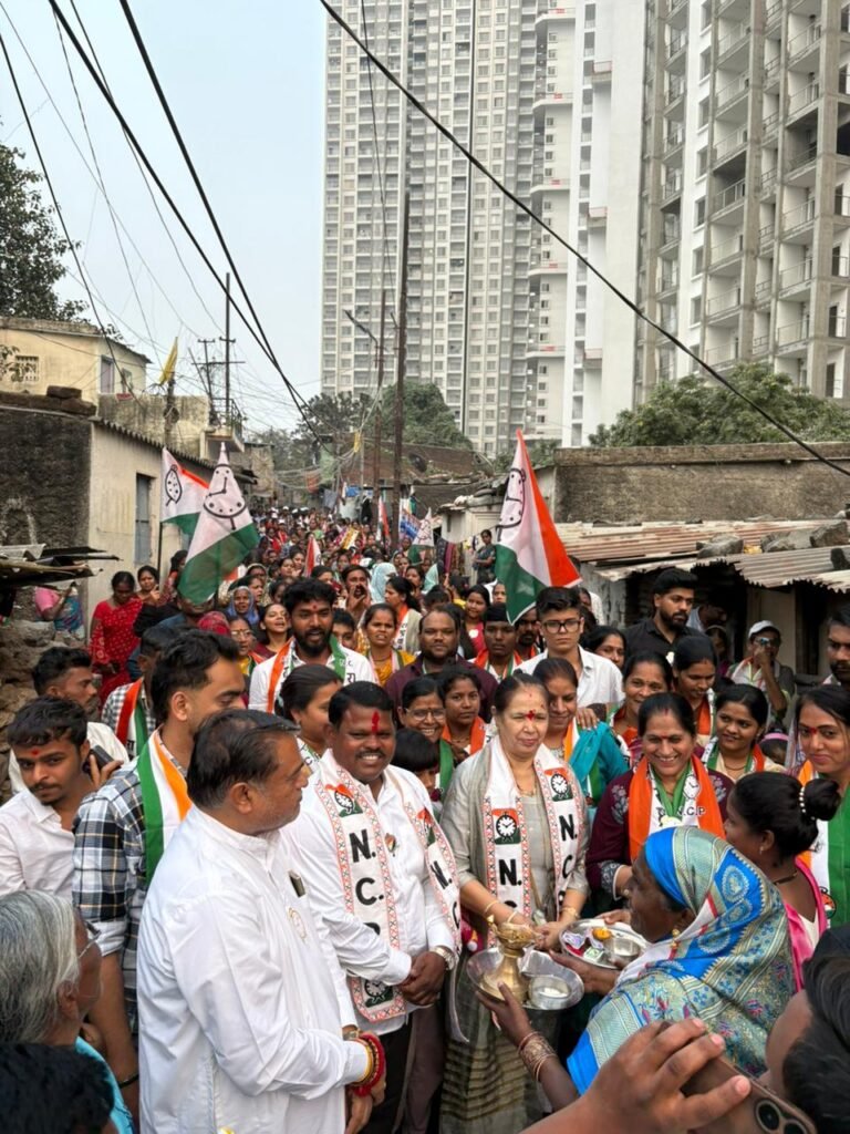 प्रभाग क्रमांक १९ मधील राष्ट्रवादी काँग्रेस पार्टीचे अधिकृत उमेदवार रीना लहू तोरणे (अ), दीपक हिरालाल मेवानी (ब), सविता धनराज आसवानी (क), काळूराम मारुती पवार (ड) यांनी (दि. ३), शनिवारी आनंद नगर परिसरात घरोघरी जाऊन मतदारांशी संपर्क साधला. ढोल, ताशाच्या निनादात महिला भगिनींनी उमेदवारांचे औक्षण करून त्यांना शुभेच्छा दिल्या, तसेच ज्येष्ठ नागरिकांनी साखर, पेढे भरवून आशीर्वाद दिले.