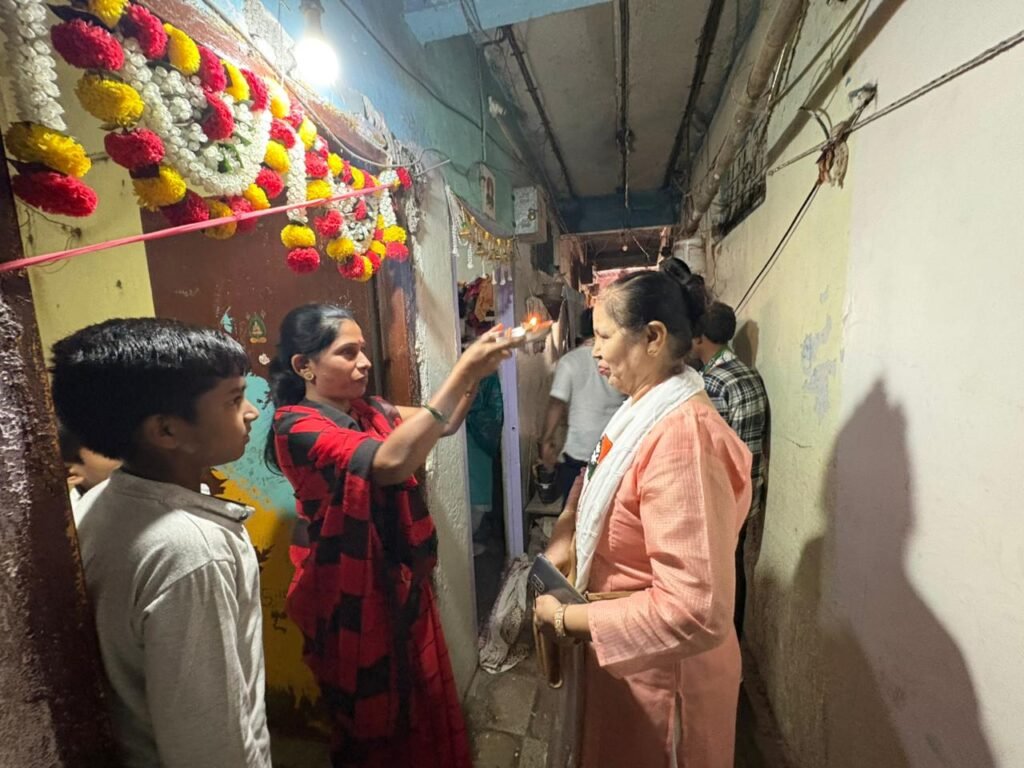 यावेळी उमेदवारांनी महिला भगिनींशी संवाद साधला.