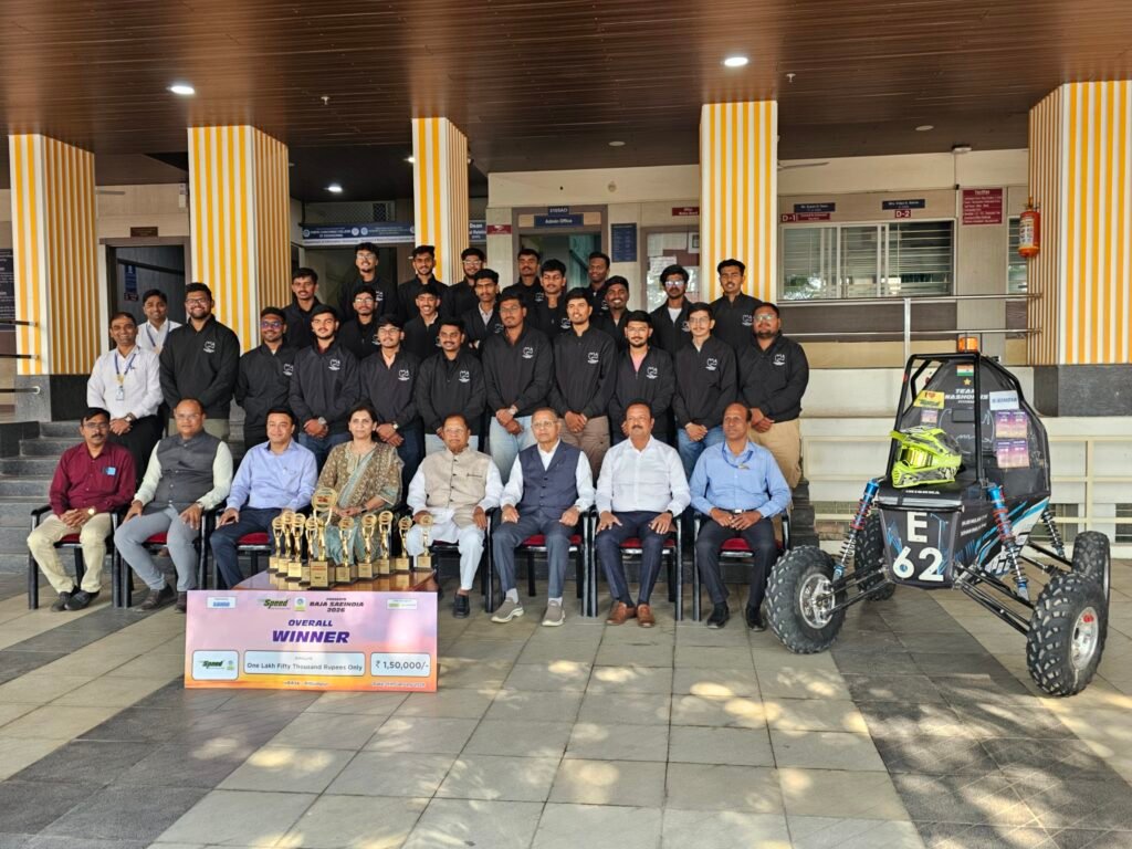 Pimpri, Pune (January 20, 2026) In the “SAE India E-Baha 2026” National Competition organized by the Society of Automotive Engineers at Pithampur, “Team Nashorns” from the Mechanical Department of Pimpri Chinchwad College of Engineering and Research (PCCOER) in Ravet, Pimpri Chinchwad Education Trust (PCET), performed brilliantly and won first place in the country with a total of 11 medals and a prize money of Rs 3 lakh 60 thousand. More than a hundred engineering colleges from across the country participated in this competition.