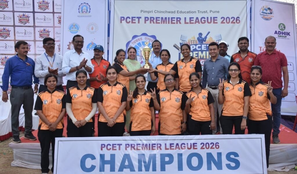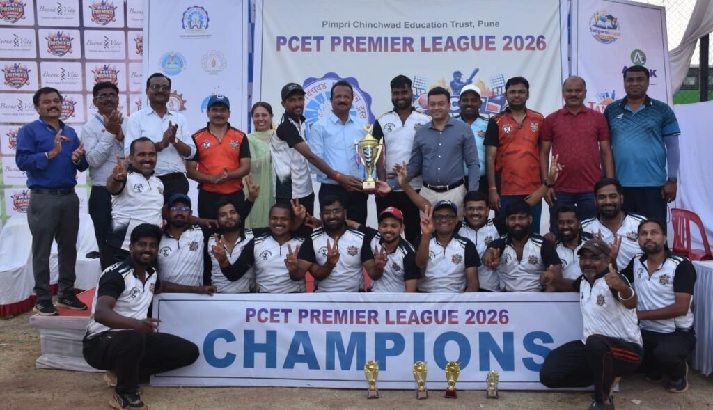 पिंपरी, पुणे (दि. २७ फेब्रुवारी २०२६) पिंपरी चिंचवड एज्युकेशन ट्रस्ट यांच्या वतीने रावेत येथील अचीवर्स क्रिकेट मैदान येथे “पीसीइटी प्रीमिअर लीग २०२६” या भव्य क्रिकेट स्पर्धेचे उद्घाटन पीसीइटीचे अध्यक्ष ज्ञानेश्वर लांडगे यांच्या हस्ते करण्यात आले. यावेळी उपाध्यक्षा पद्माताई भोसले, सचिव विठ्ठल काळभोर, खजिनदार शांताराम गराडे, विश्वस्त हर्षवर्धन पाटील, युवा उद्योजक नरेंद्र लांडगे, अजिंक्य काळभोर, कार्यकारी संचालक डॉ. गिरीश देसाई, पीसीसीओइआर चे संचालक प्राचार्य डॉ. हरीश तिवारी, पीसीपी प्राचार्या डॉ. विद्या बॅकोड, एस. बी. पाटील पब्लिक स्कूलच्या प्राचार्या डॉ. बिंदू सैनी, महाविद्यालयाचे प्राचार्य संदीप पाटील, सहभागी शिक्षक, शिक्षकेतर खेळाडू आदी उपस्थित होते.